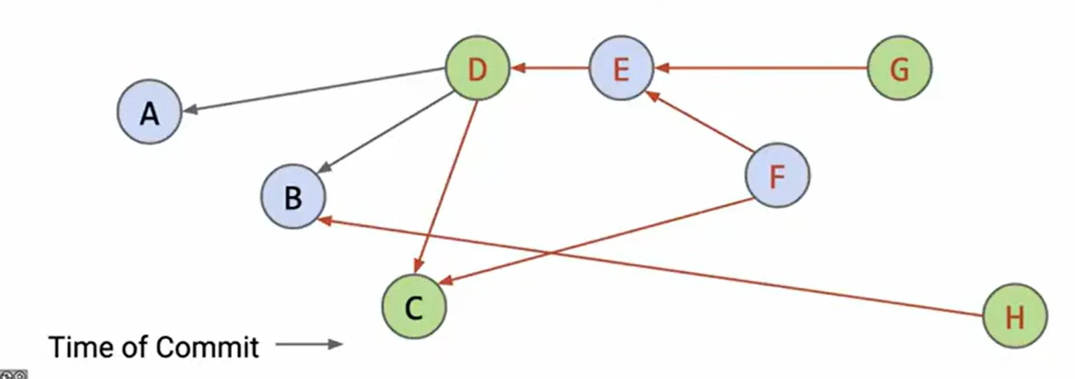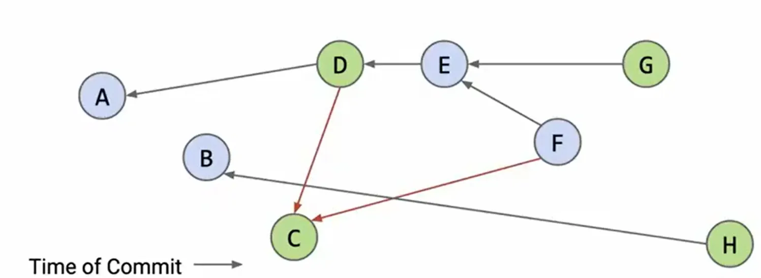 Date: Fri Sep 15 11:10:50 2023 -0700如果边的方向被反转呢?那样的话,可以从提交开始向前进行广度优先搜索(BFS),以找到包含它的部署。这可以通过使用邻接表来实现,而不是只存储一个(或两个)父项,因为一个提交只能有一个父项(如果是合并提交,则有两个),但它可以有无限多的子项。